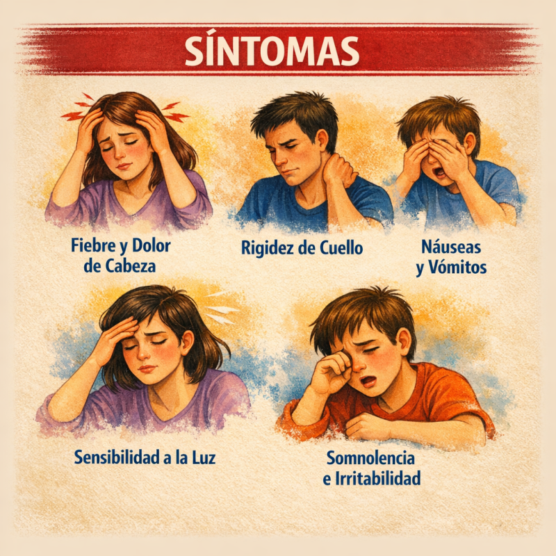 En bebés y niños pequeños pueden aparecer síntomas específicos como llanto constante, irritabilidad, falta de apetito o abultamiento de la fontanela (zona blanda de la cabeza).