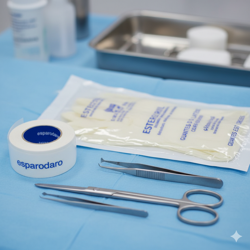- Alcohol (70%) o agua oxigenada para desinfectar.