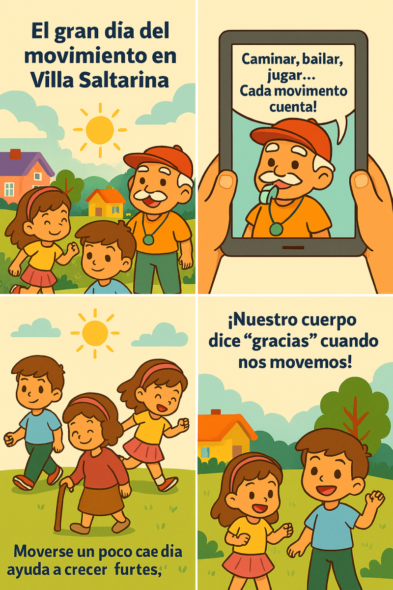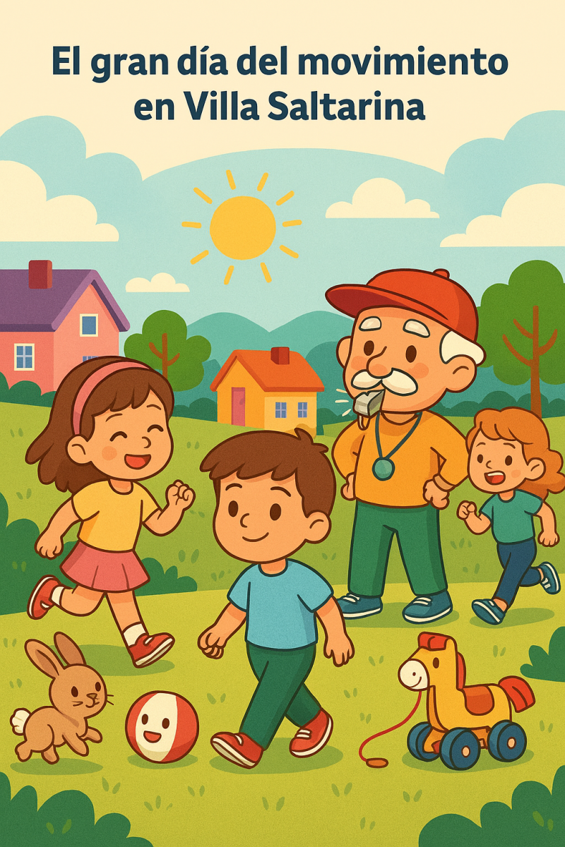 Había una vez un pequeño lugar llamado Villa Saltarina, donde vivían niños, niñas, animales y juguetes muy especiales. En ese pueblo todos sabían que algo mágico estaba a punto de ocurrir, porque había llegado el Día del Movimiento.
